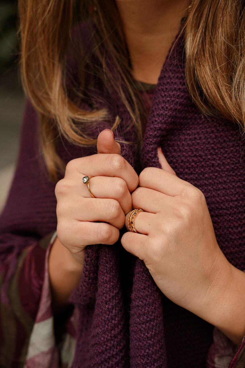 Anillo piedra cristal en anillo de latón bañado en oro ajustable.