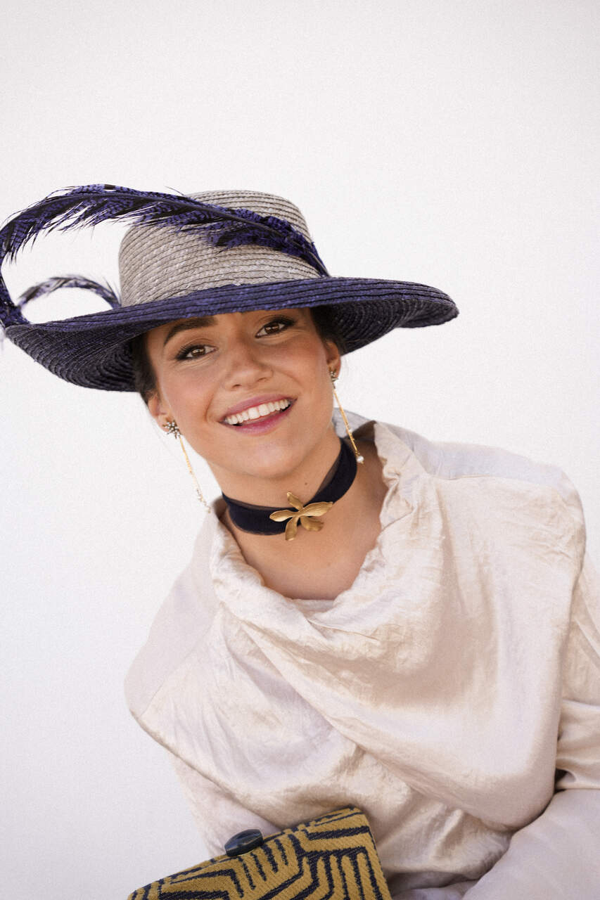 Choker azul marino tul seda con flor de latón. Ajustable con nudo o lazada detrás