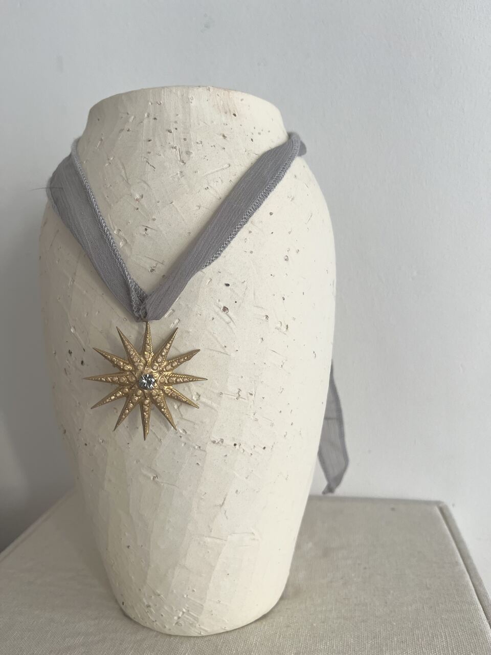 Choker gargantilla de gasa ajustable con lazada a tu gusto, con estrella central de latón. 3 cm diámetro de la estrella.