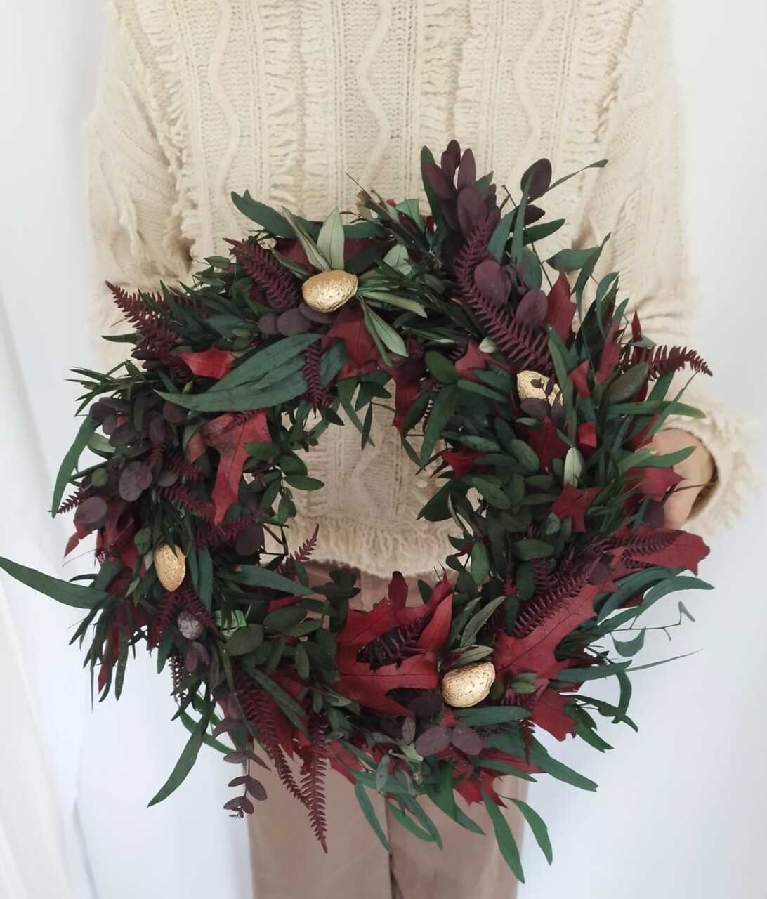 El CORONA ROBLE es una hermosa corona navideña que presenta flores preservadas de alta calidad que durarán durante toda la temporada. Se destaca por sus colores vibrantes y su forma artesanal, generando una impresionante adición a su hogar. Perfecto para celebrar la Navidad.