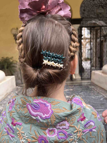 En este apartado podrás encontrar una gran selección de complementos de niñas para flamenca, todos ellos realizados a mano son piezas únicas originales broches, peinas, horquillas, flores pendientes.....