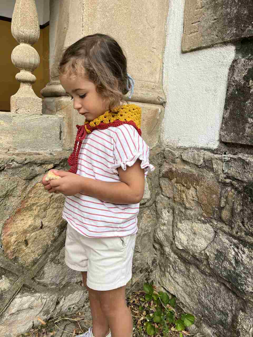 Pico de punto crochet a elegir entre tres colores puede usarlo como pañuelo de cuello o pañuelo de cabeza , queda ideal como complemento para un jersey a modo cuello o pico