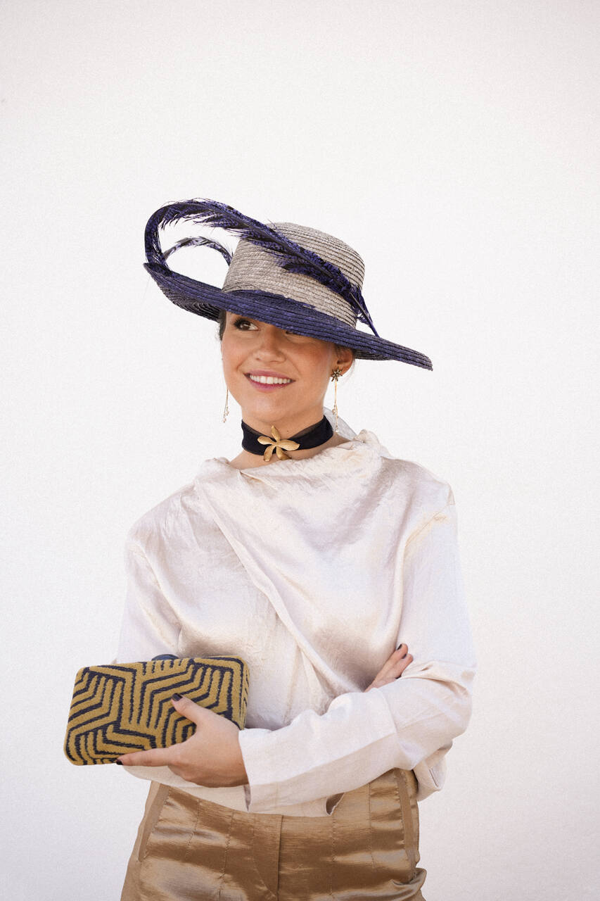 La pamela magenta está elaborada con paja trenzada de 9-10 mm, ofreciendo una copa redonda de 9 cm de altura y un diámetro aproximado de 38 cm. Su ala, parcialmente inclinada hacia arriba, permite múltiples formas de uso, brindando versatilidad y estilo. Disponible en talla (57 cm)