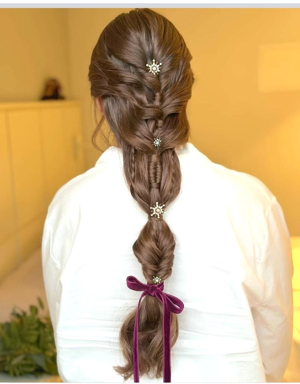 Duo de horquillas de estrellas con perlas y piedra blanca.