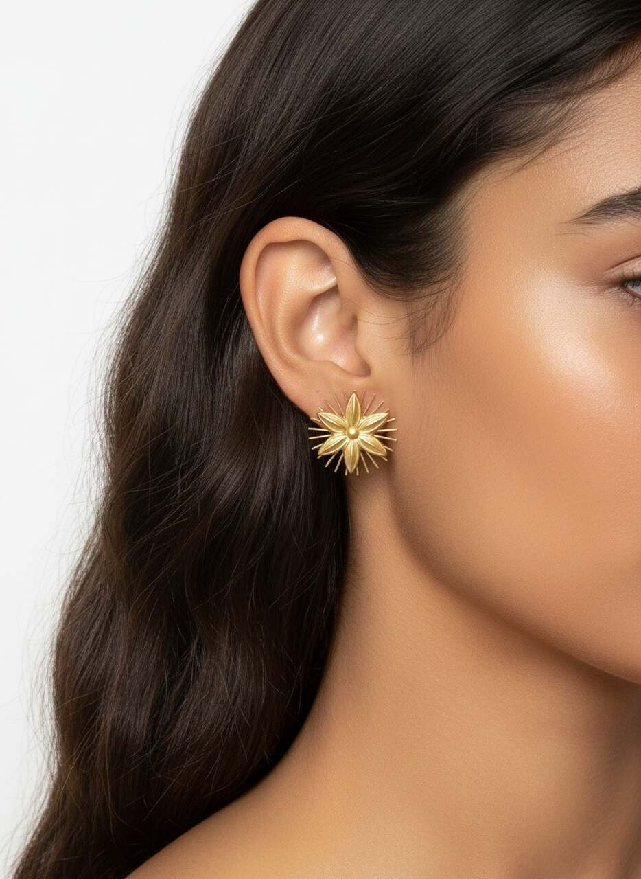 Pendientes flor dalia con cierre de clip base medida 3.5 cm diámetro