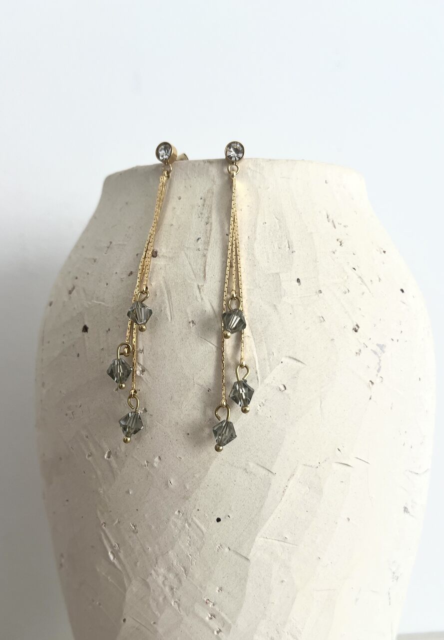 Pendientes luciernaga cierre circonita de presión con cadenas trio de acero inoxidable y tupi de cristal