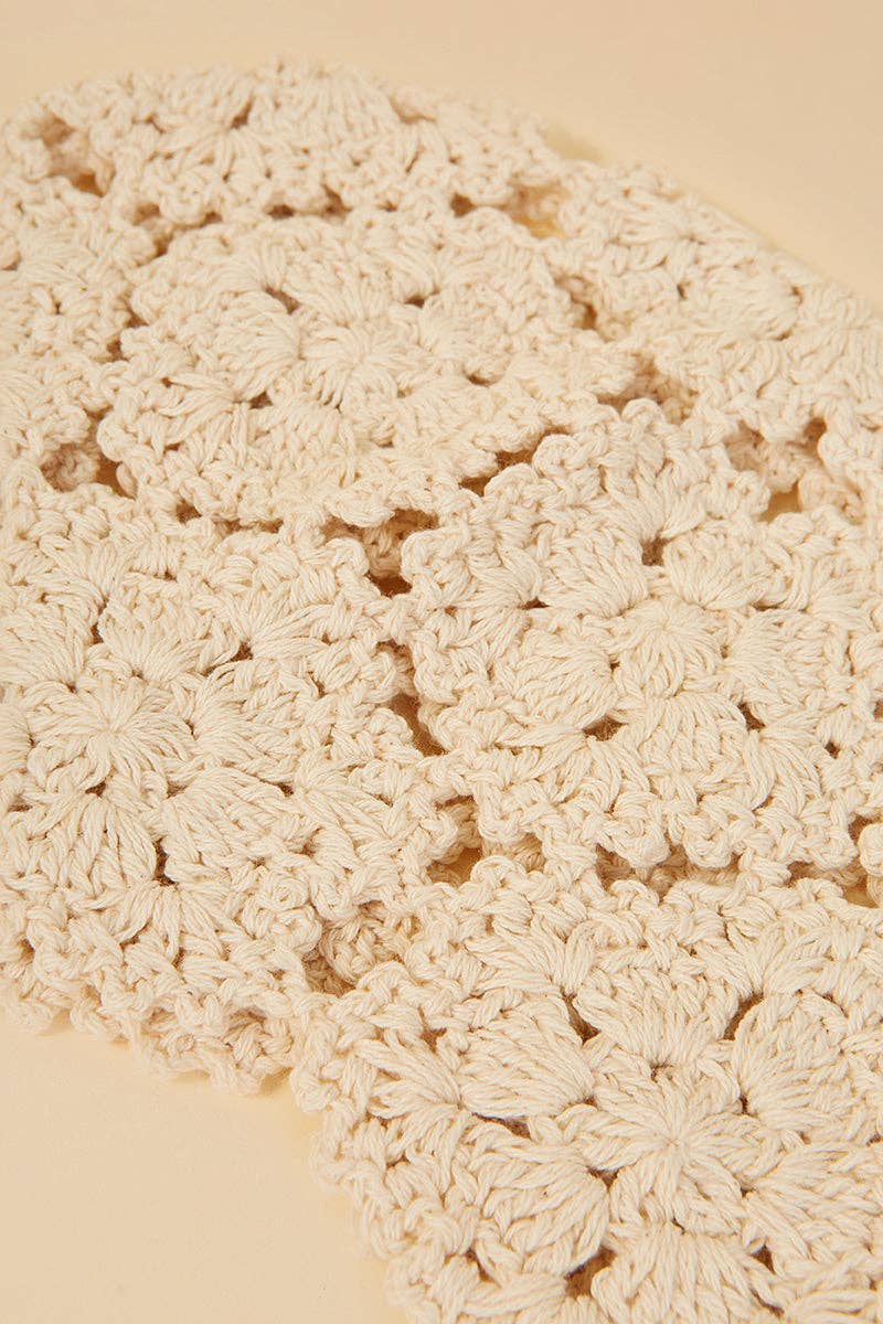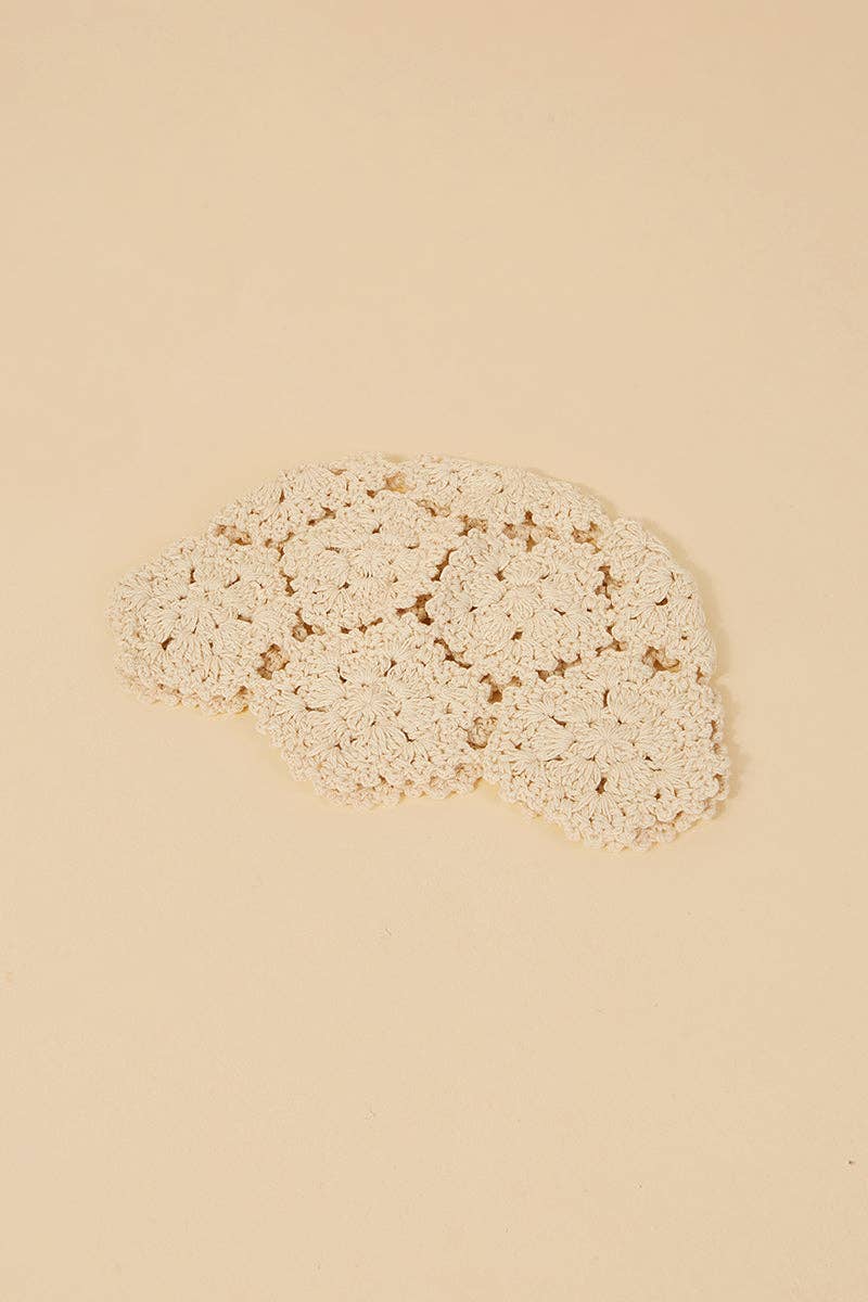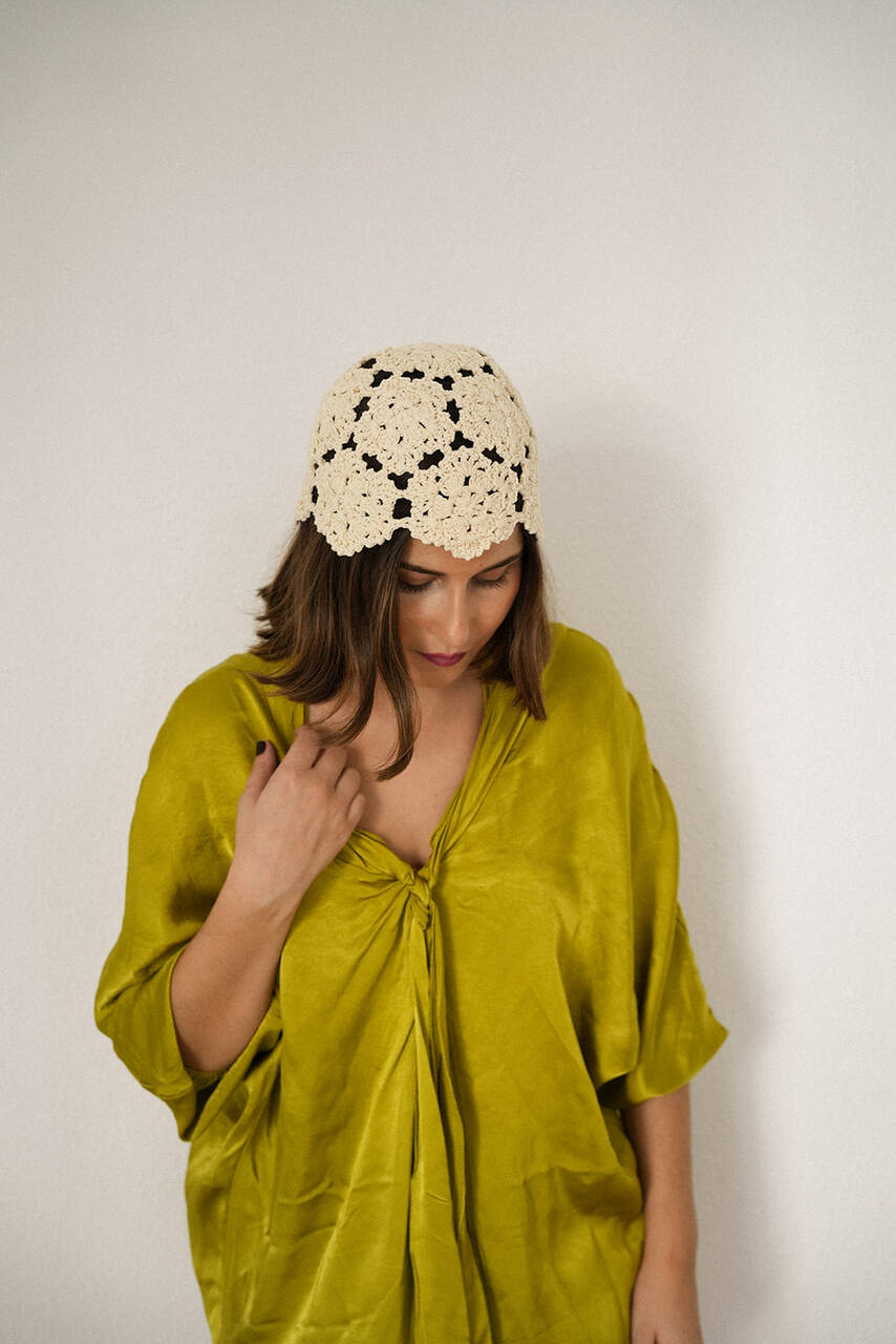Casquete de crochet en tono crudo, trabajado a mano con delicadas flores que evocan el espíritu artesanal del verano. Este accesorio es el toque final perfecto para elevar cualquier look estival con un aire bohemio y sofisticado. Ideal para llevar en la playa, en un evento al aire libre o en cualquier ocasión donde busques un detalle especial y auténtico. Diseñado como pieza única, este casquete se adapta cómodamente a la cabeza y aporta un aire romántico y natural. La artesanía tradicional del crochet se fusiona con una estética contemporánea, convirtiéndolo en un imprescindible de las tendencias de invitada y estilismos de verano. Perfecto para invitadas, novias de espíritu libre o amantes del estilo mediterráneo. Un accesorio exclusivo que suma personalidad a cualquier outfit. MEDIDAS 56-58cm diametro.